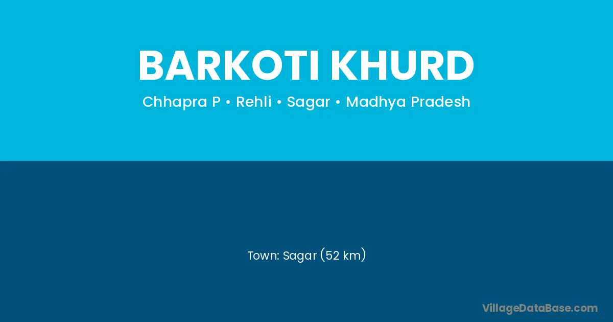 Sagar (52 km) is the nearest town to Barkoti Khurd village for major economic activities and is located approximately 52 km away.