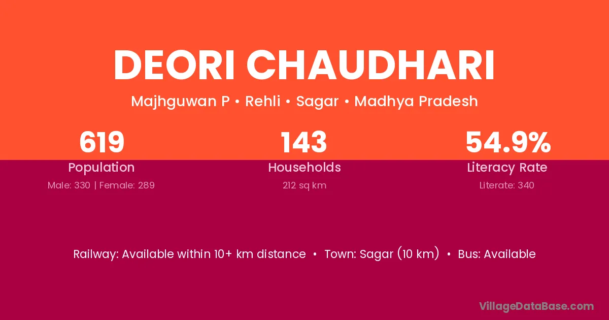 Sagar (10 km) is the nearest town to Deori Chaudhari village for major economic activities and is located approximately 10 km away.