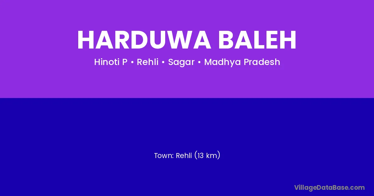 Rehli (13 km) is the nearest town to Harduwa Baleh village for major economic activities and is located approximately 13 km away.