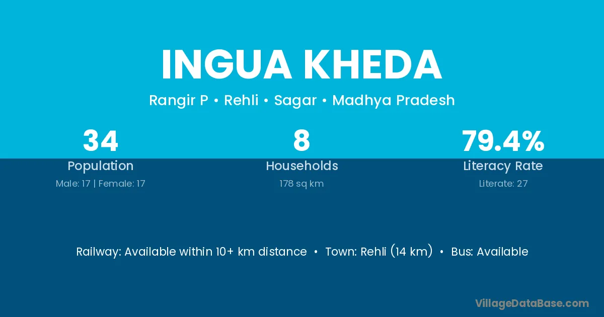 Rehli (14 km) is the nearest town to Ingua Kheda village for major economic activities and is located approximately 14 km away.