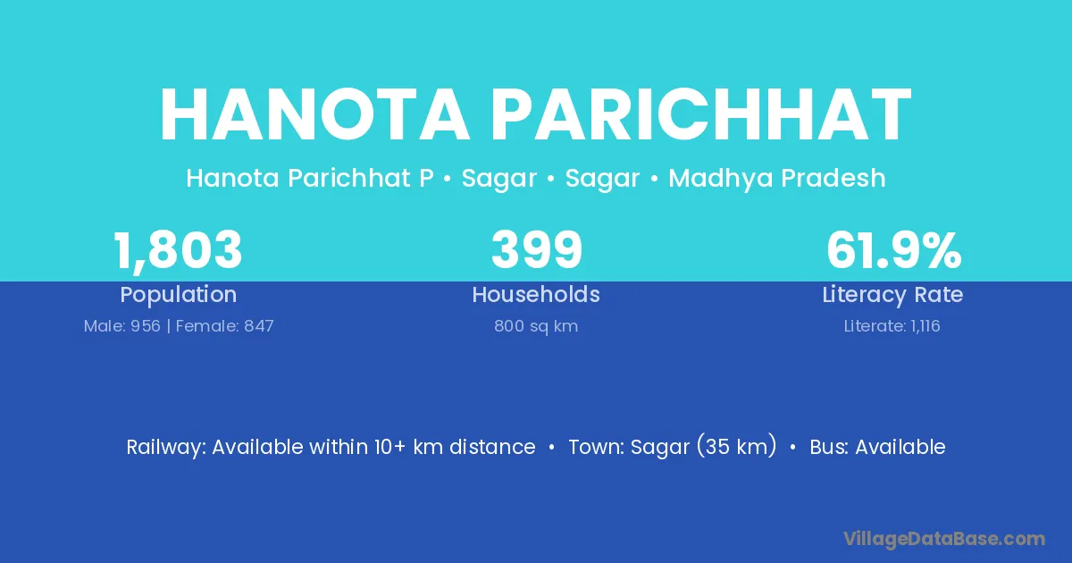 Sagar (35 km) is the nearest town to Hanota Parichhat village for major economic activities and is located approximately 35 km away.