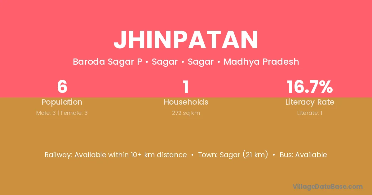 Sagar (21 km) is the nearest town to Jhinpatan village for major economic activities and is located approximately 21 km away.