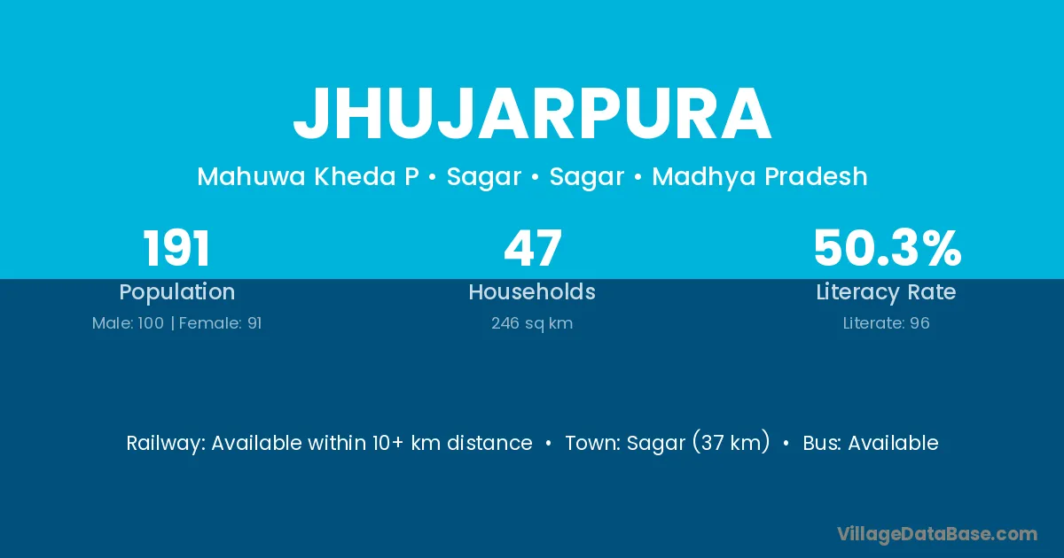 Sagar (37 km) is the nearest town to Jhujarpura village for major economic activities and is located approximately 37 km away.