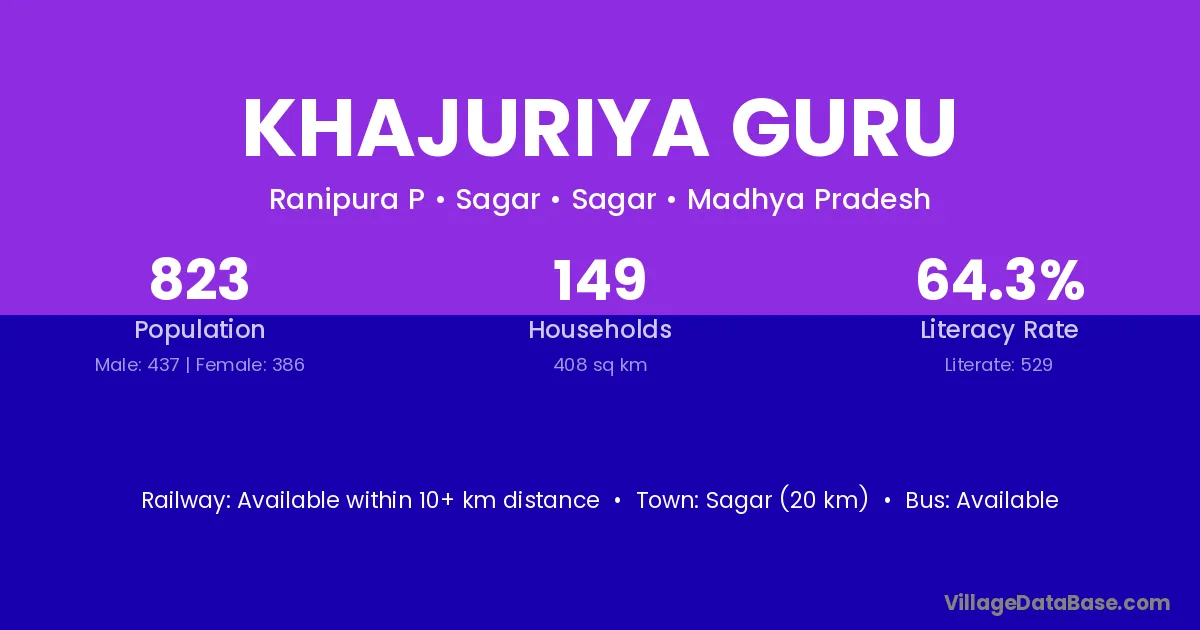 Sagar (20 km) is the nearest town to Khajuriya Guru village for major economic activities and is located approximately 20 km away.