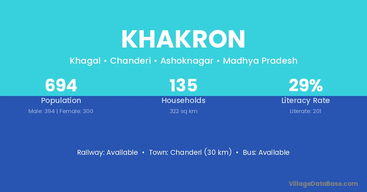 Sagar (30 km) is the nearest town to Khakron village for major economic activities and is located approximately 30 km away.
