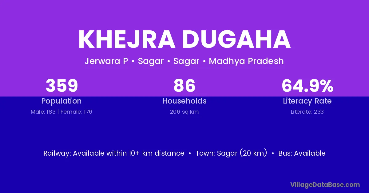 Sagar (20 km) is the nearest town to Khejra Dugaha village for major economic activities and is located approximately 20 km away.