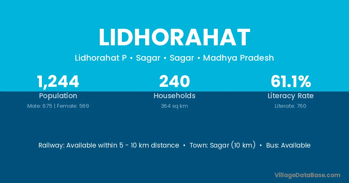 Sagar (10 km) is the nearest town to Lidhorahat village for major economic activities and is located approximately 10 km away.