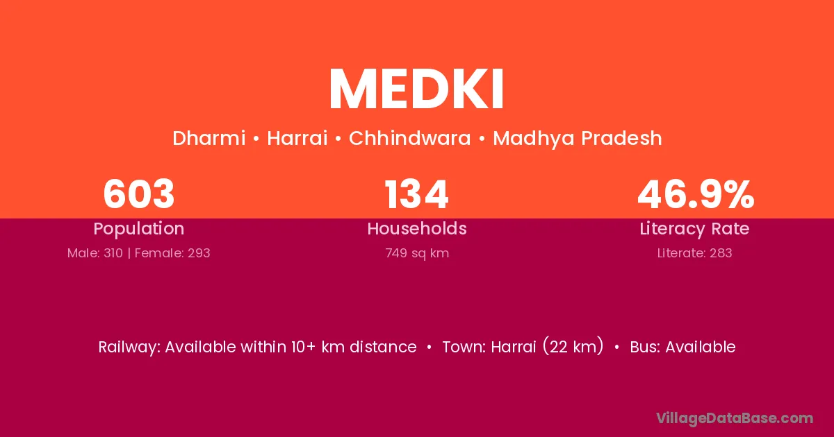 Sagar (47 km) is the nearest town to Medki village for major economic activities and is located approximately 47 km away.