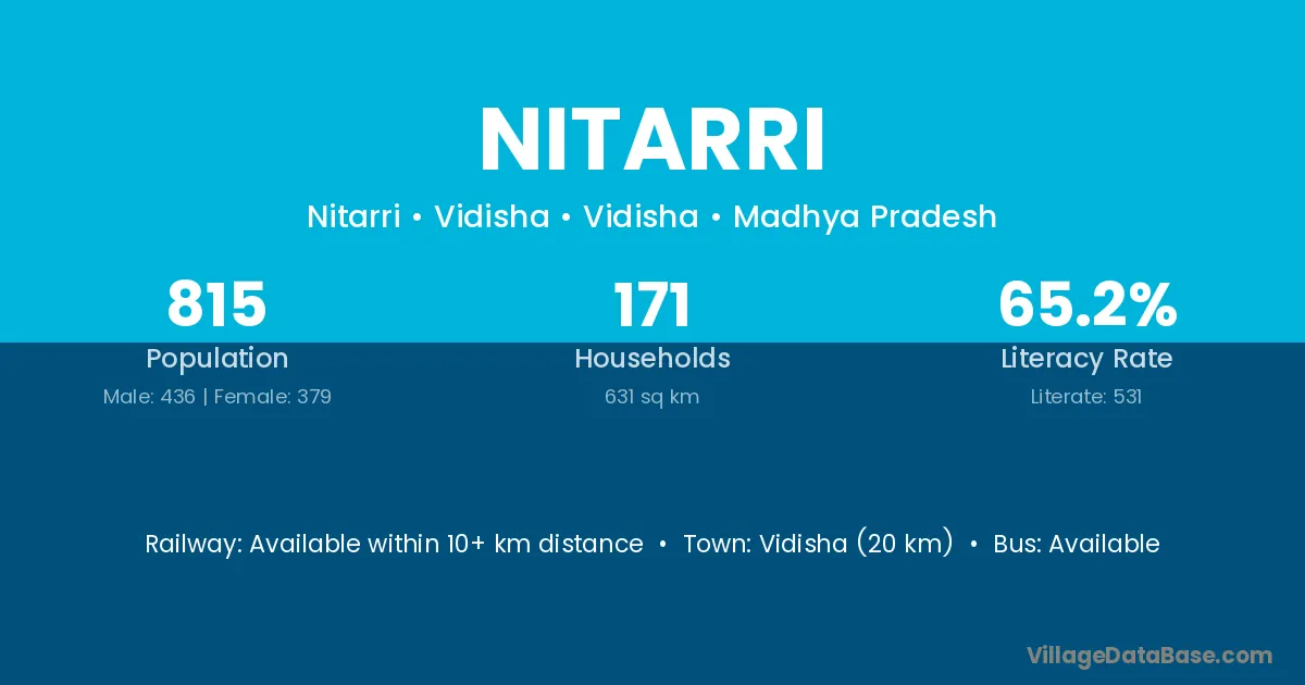 Sagar (26 km) is the nearest town to Nitarri village for major economic activities and is located approximately 26 km away.