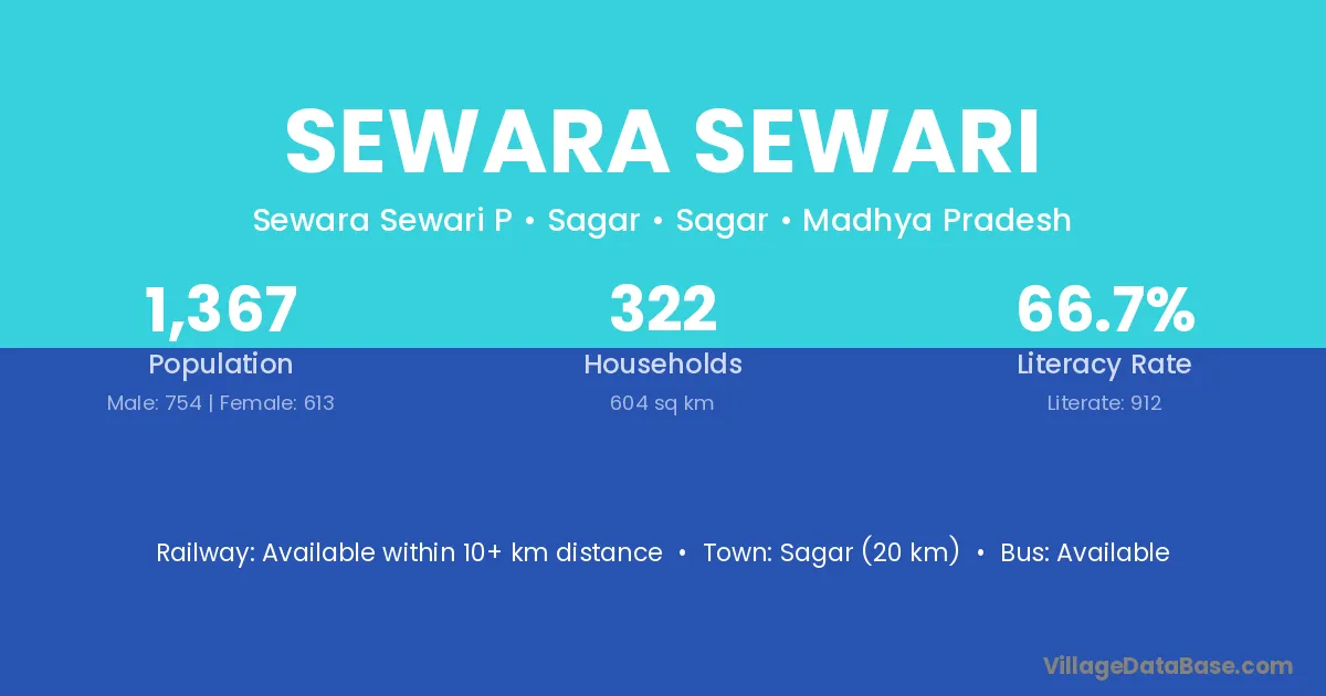 Sagar (20 km) is the nearest town to Sewara Sewari village for major economic activities and is located approximately 20 km away.