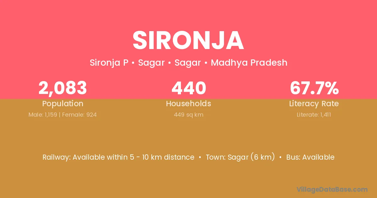 Sagar (6 km) is the nearest town to Sironja village for major economic activities and is located approximately 6 km away.
