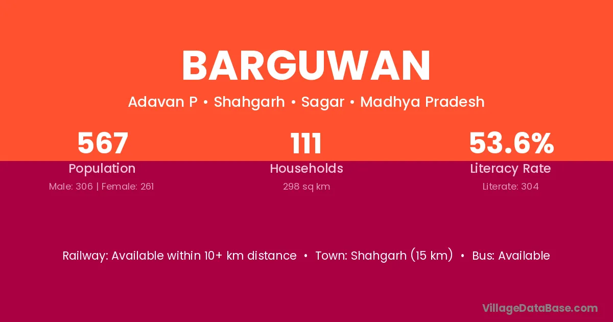 Shahgarh (15 km) is the nearest town to Barguwan village for major economic activities and is located approximately 15 km away.