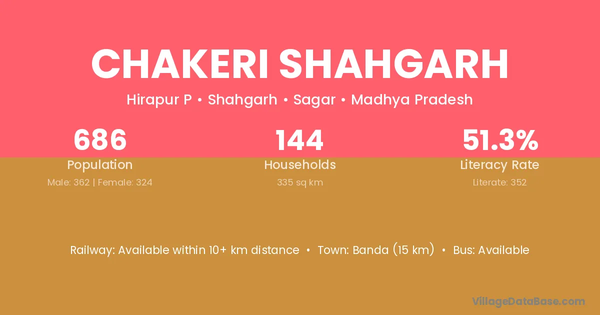 Chakeri Shahgarh village has a total population of 686 people, of which 362 are males and 324 are females.