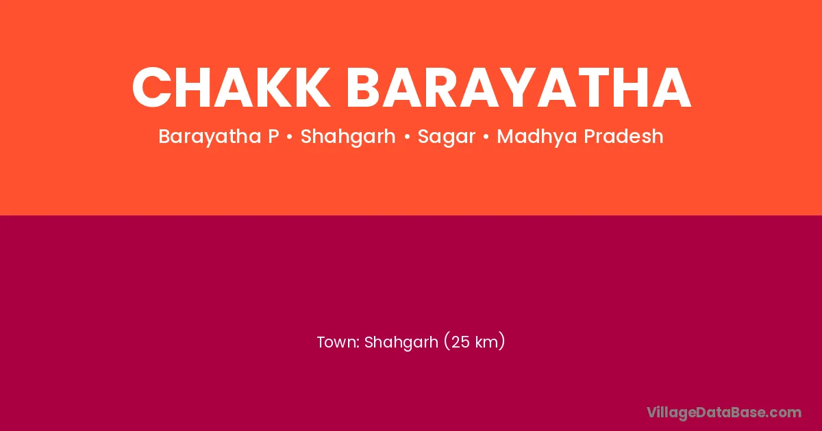 Shahgarh (25 km) is the nearest town to Chakk Barayatha village for major economic activities and is located approximately 25 km away.