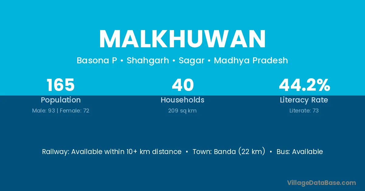 Banda (22 km) is the nearest town to Malkhuwan village for major economic activities and is located approximately 22 km away.
