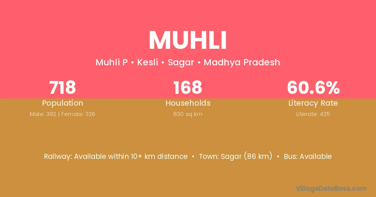 Banda (17 km) is the nearest town to Muhli village for major economic activities and is located approximately 17 km away.