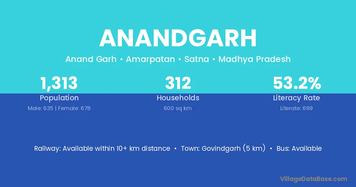Govindgarh (5 km) is the nearest town to Anandgarh village for major economic activities and is located approximately 5 km away.
