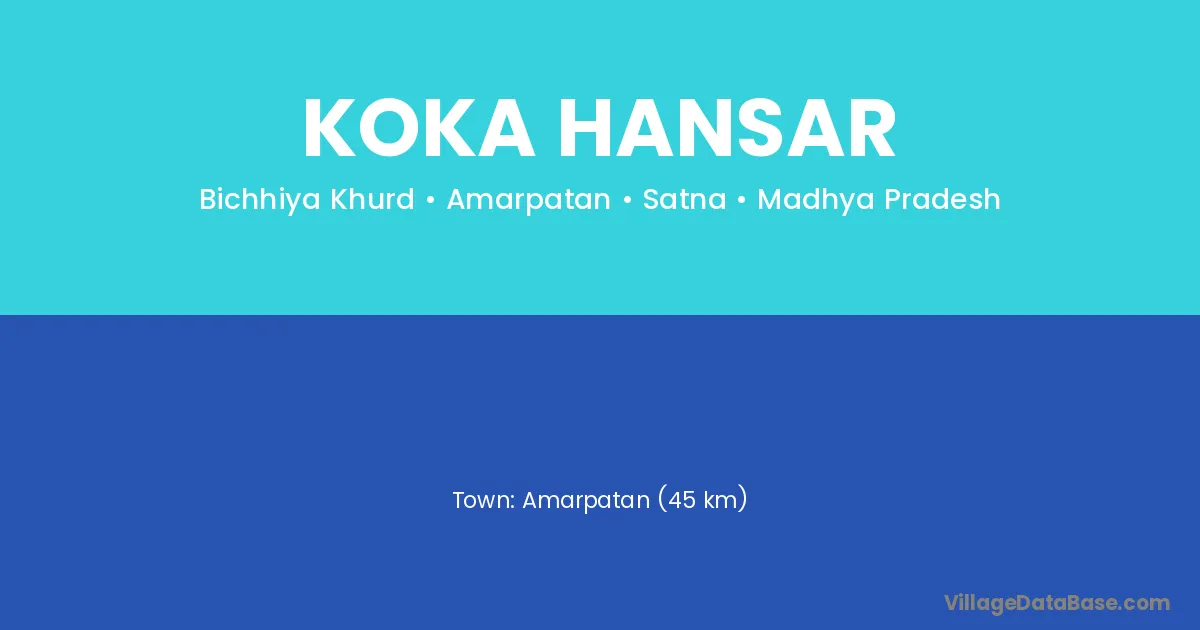 Amarpatan (45 km) is the nearest town to Koka Hansar village for major economic activities and is located approximately 45 km away.