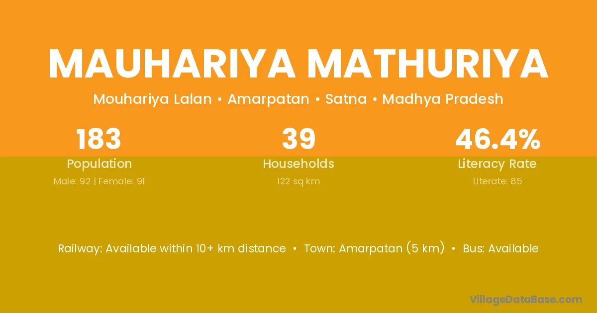 Mauhariya Mathuriya village has a total population of 183 people, of which 92 are males and 91 are females.