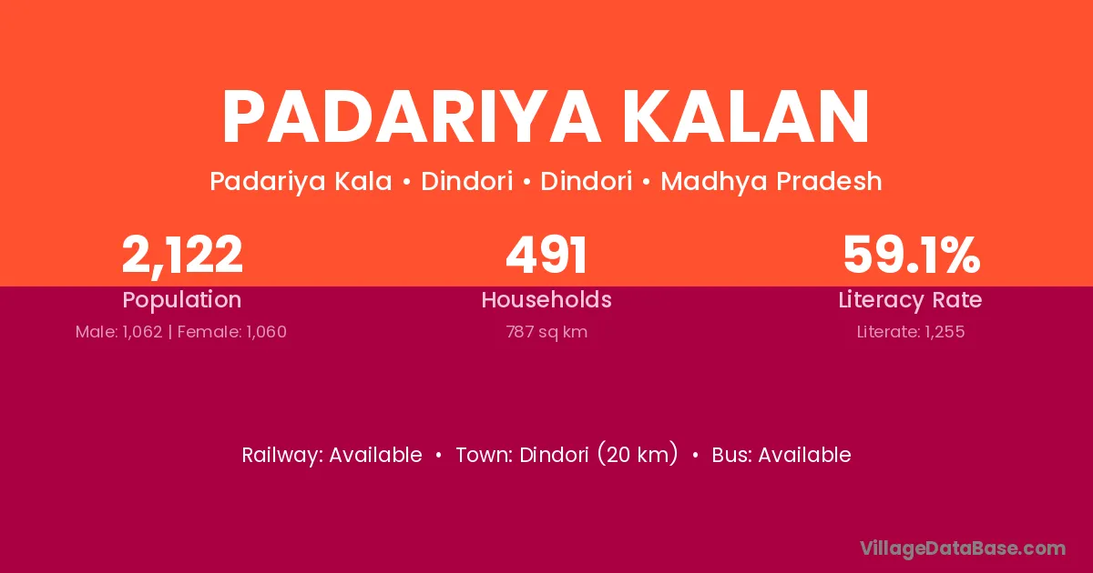 Rewa (30 km) is the nearest town to Padariya Kalan village for major economic activities and is located approximately 30 km away.