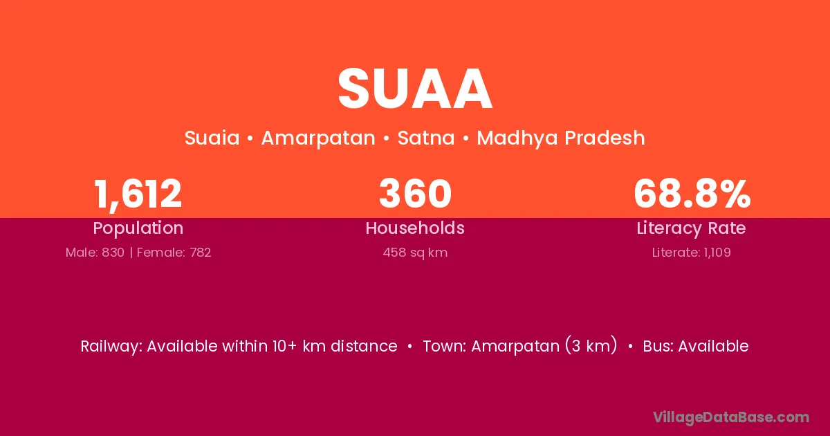 Suaa village has a total population of 1,612 people, of which 830 are males and 782 are females.