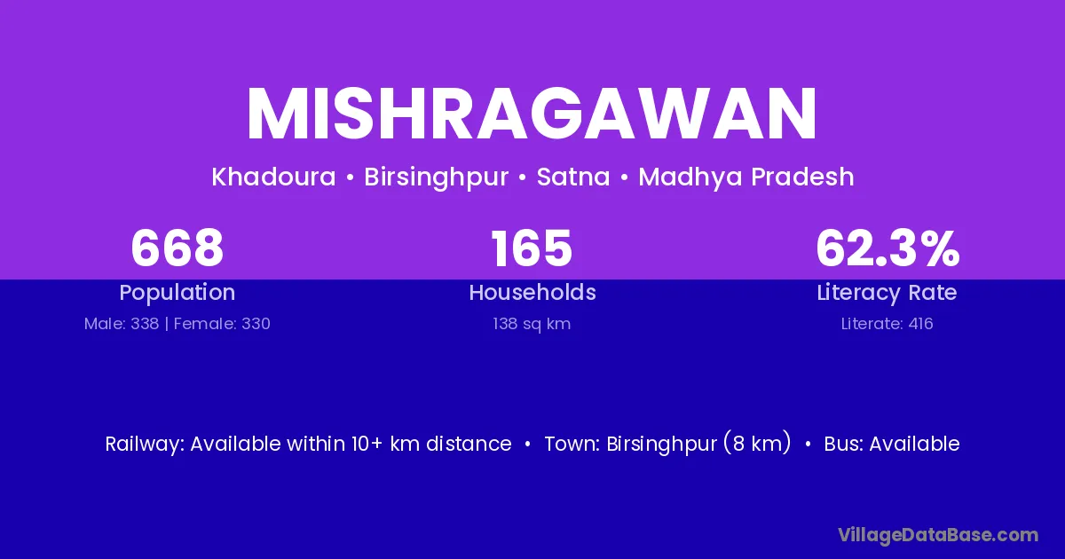 Birsinghpur (8 km) is the nearest town to Mishragawan village for major economic activities and is located approximately 8 km away.