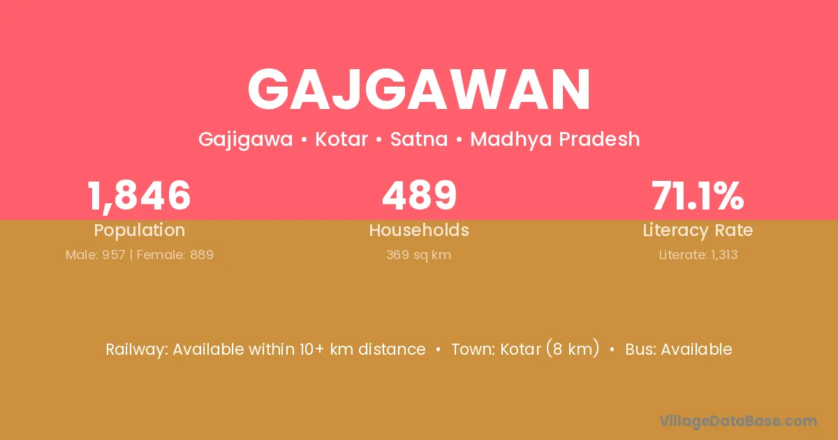Kotar (8 km) is the nearest town to Gajgawan village for major economic activities and is located approximately 8 km away.