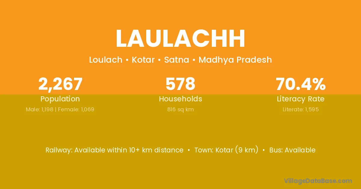Kotar (9 km) is the nearest town to Laulachh village for major economic activities and is located approximately 9 km away.
