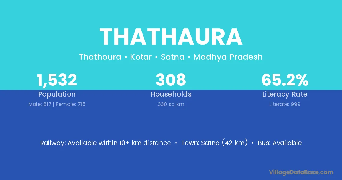 Satna (42 km) is the nearest town to Thathaura village for major economic activities and is located approximately 42 km away.