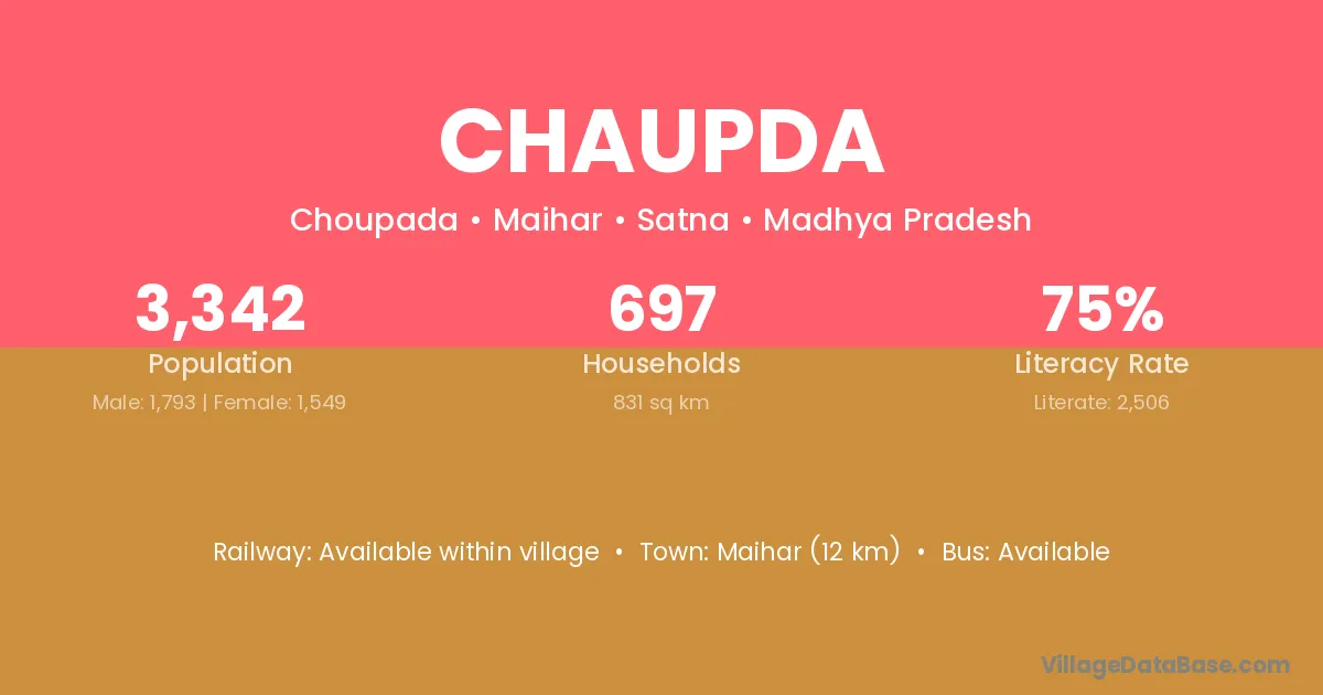 Maihar (12 km) is the nearest town to Chaupda village for major economic activities and is located approximately 12 km away.