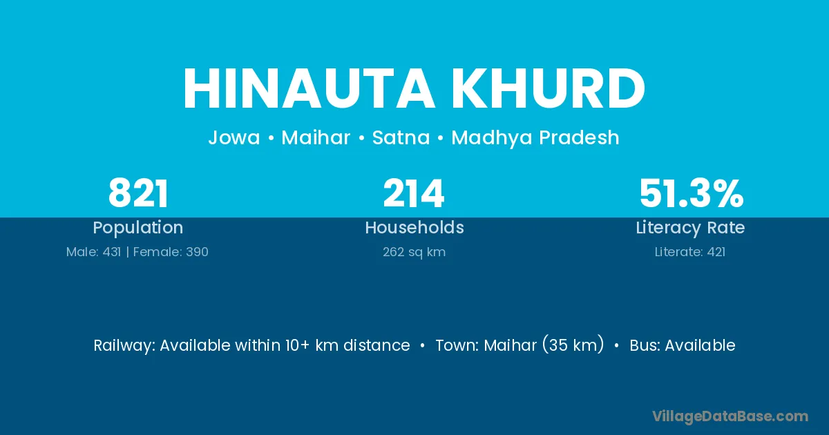 Maihar (35 km) is the nearest town to Hinauta Khurd village for major economic activities and is located approximately 35 km away.