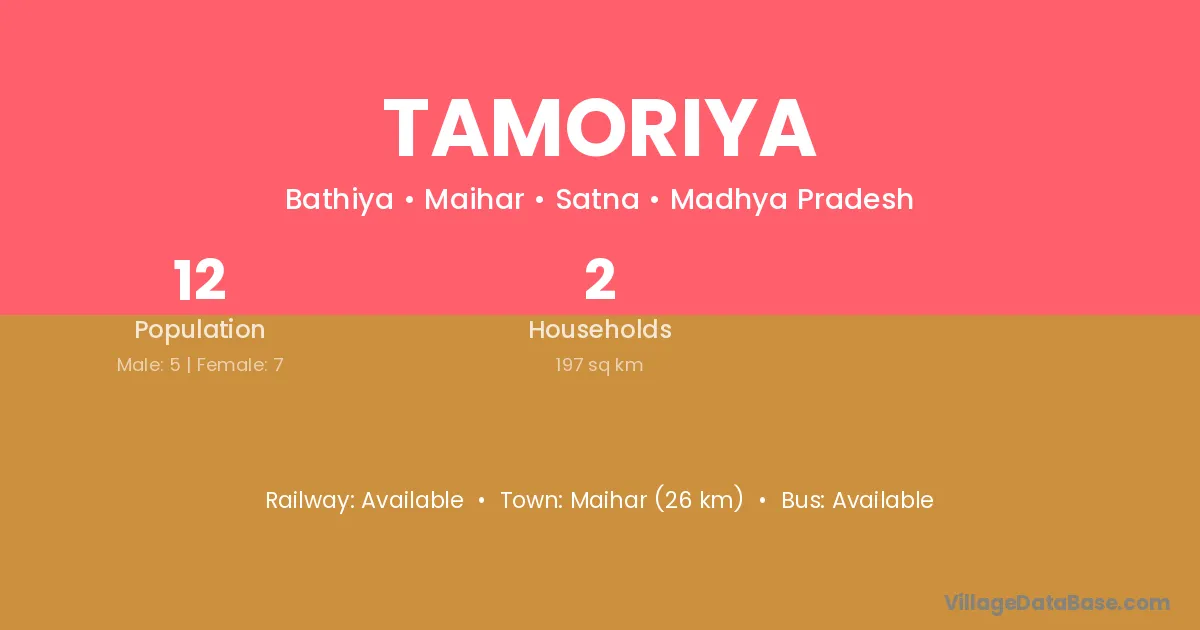 Maihar (26 km) is the nearest town to Tamoriya village for major economic activities and is located approximately 26 km away.
