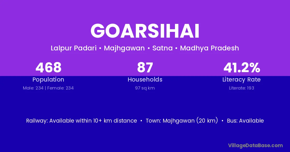 Majhgawan (20 km) is the nearest town to Goarsihai village for major economic activities and is located approximately 20 km away.