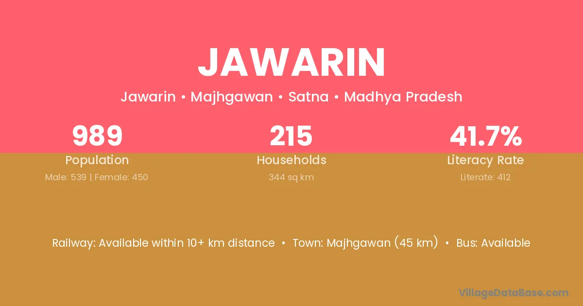 Majhgawan (45 km) is the nearest town to Jawarin village for major economic activities and is located approximately 45 km away.