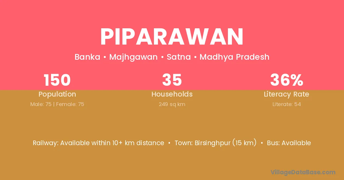 Birsinghpur (15 km) is the nearest town to Piparawan village for major economic activities and is located approximately 15 km away.