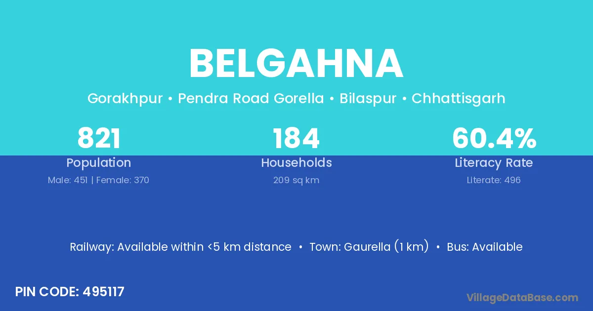 Belgahna village has a total population of 834 people, of which 435 are males and 399 are females.