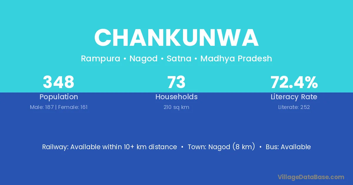 Nagod (8 km) is the nearest town to Chankunwa village for major economic activities and is located approximately 8 km away.