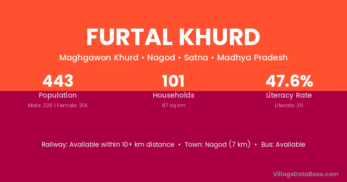 Nagod (7 km) is the nearest town to Furtal Khurd village for major economic activities and is located approximately 7 km away.