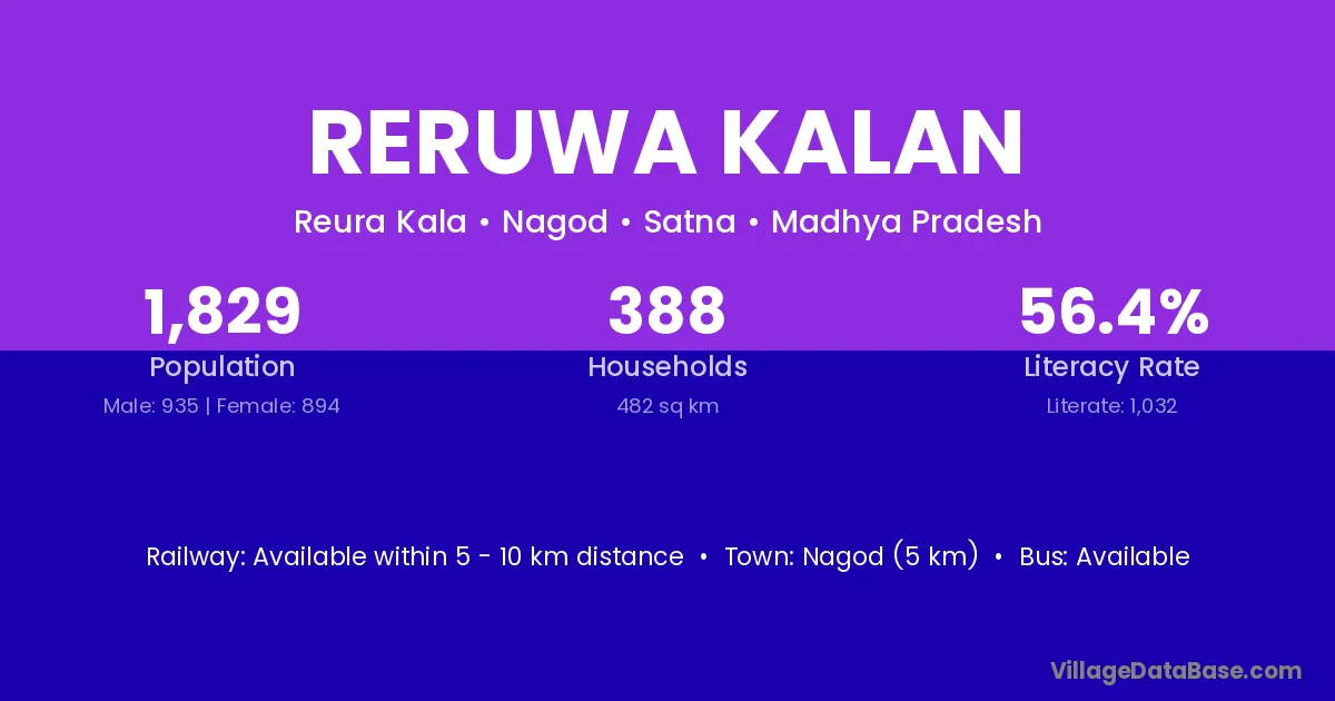 Nagod (5 km) is the nearest town to Reruwa Kalan village for major economic activities and is located approximately 5 km away.