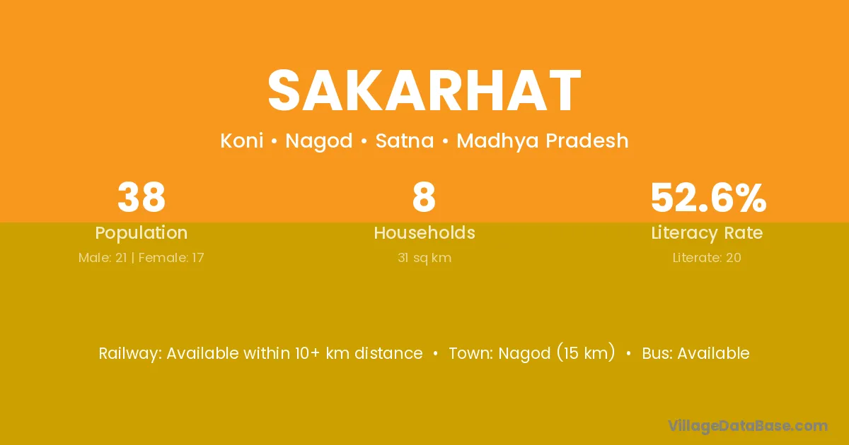 Nagod (15 km) is the nearest town to Sakarhat village for major economic activities and is located approximately 15 km away.