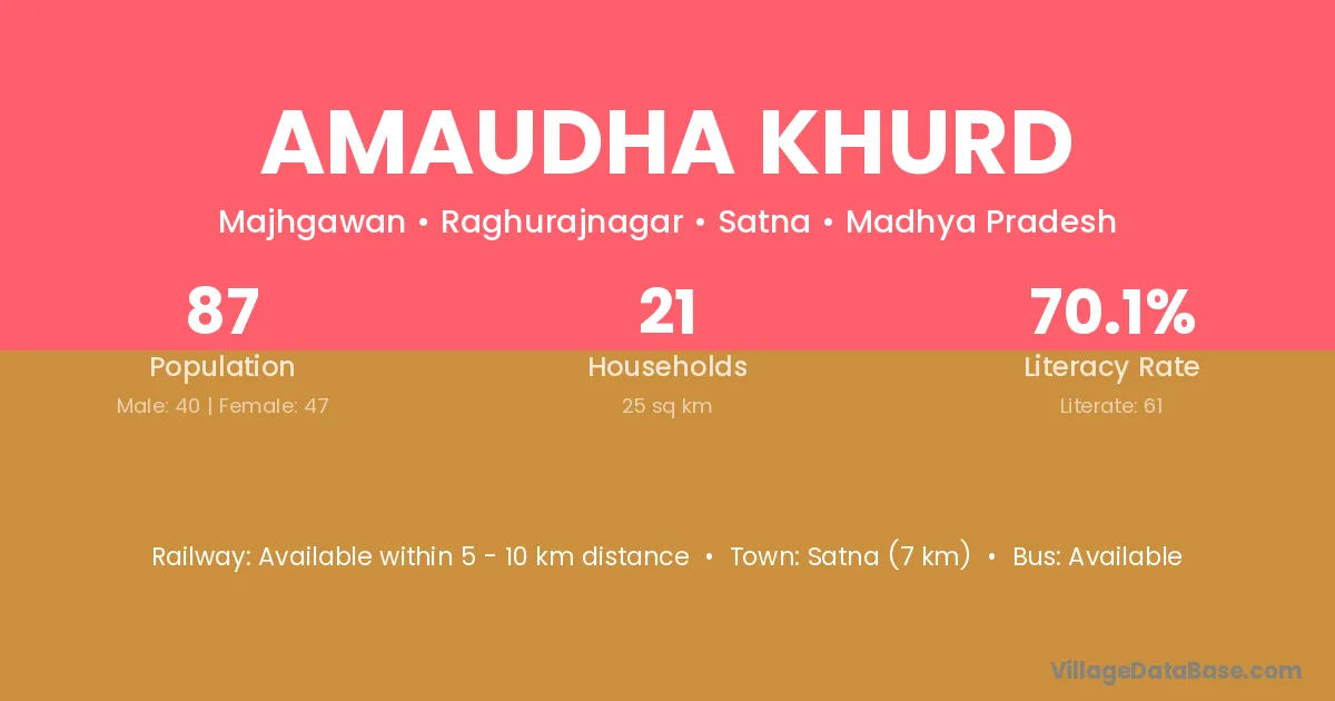 Satna (7 km) is the nearest town to Amaudha Khurd village for major economic activities and is located approximately 7 km away.