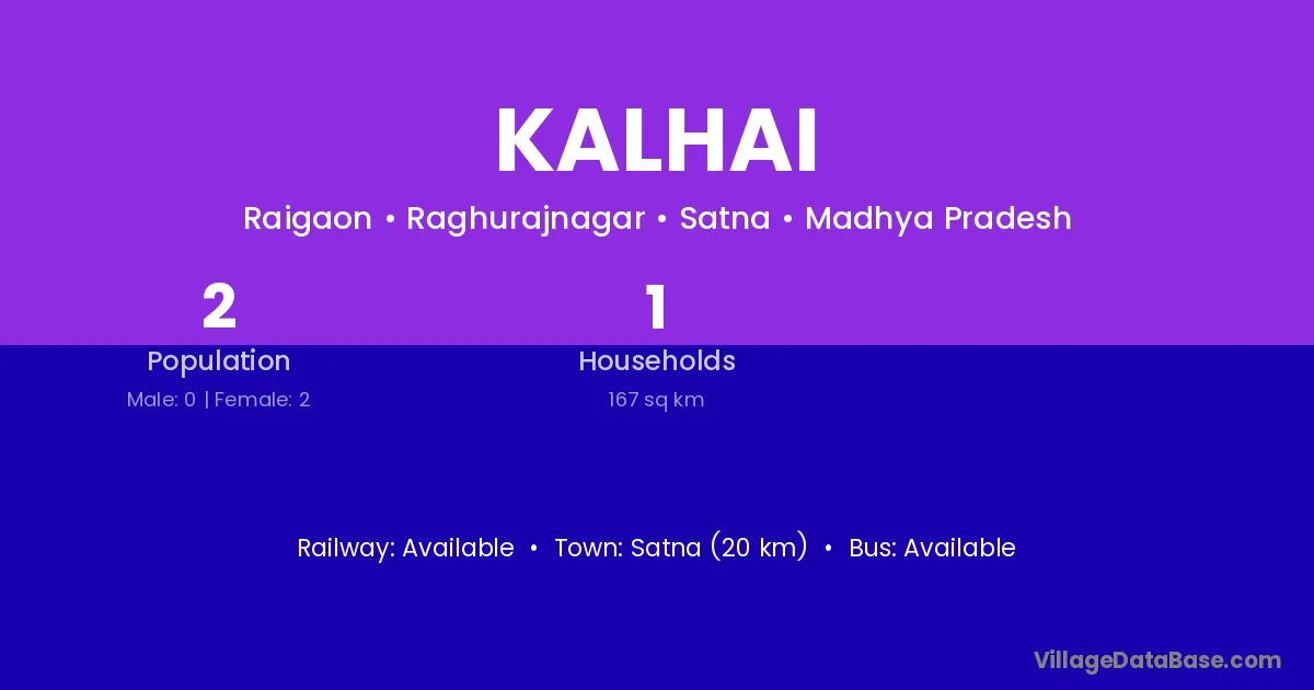 Satna (20 km) is the nearest town to Kalhai village for major economic activities and is located approximately 20 km away.