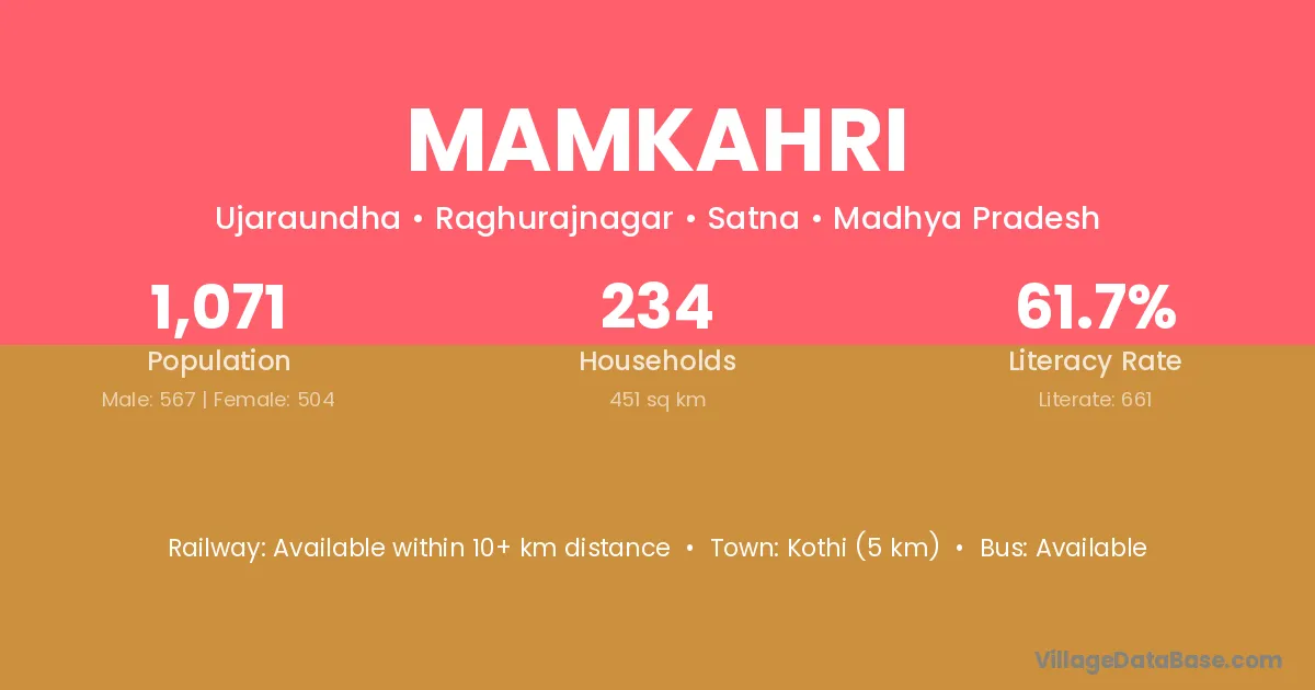 Kothi (5 km) is the nearest town to Mamkahri village for major economic activities and is located approximately 5 km away.