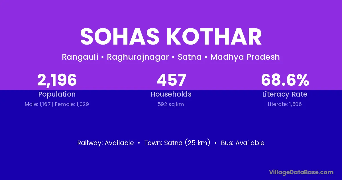 Satna (25 km) is the nearest town to Sohas Kothar village for major economic activities and is located approximately 25 km away.