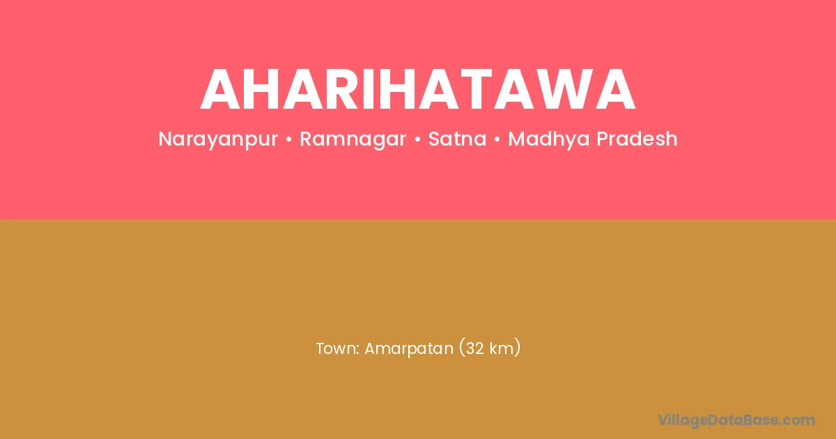 Amarpatan (32 km) is the nearest town to Aharihatawa village for major economic activities and is located approximately 32 km away.