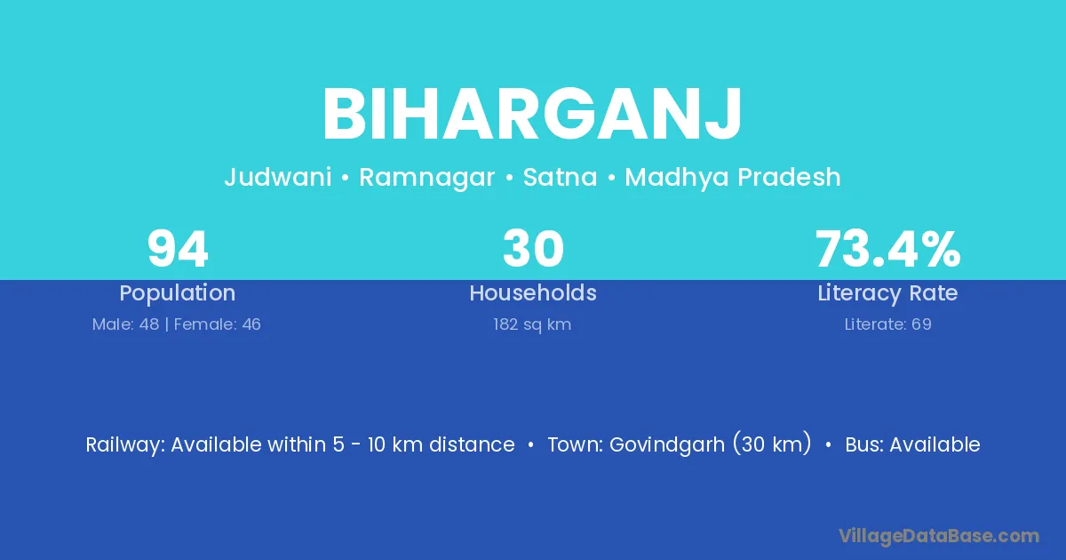 Govindgarh (30 km) is the nearest town to Biharganj village for major economic activities and is located approximately 30 km away.