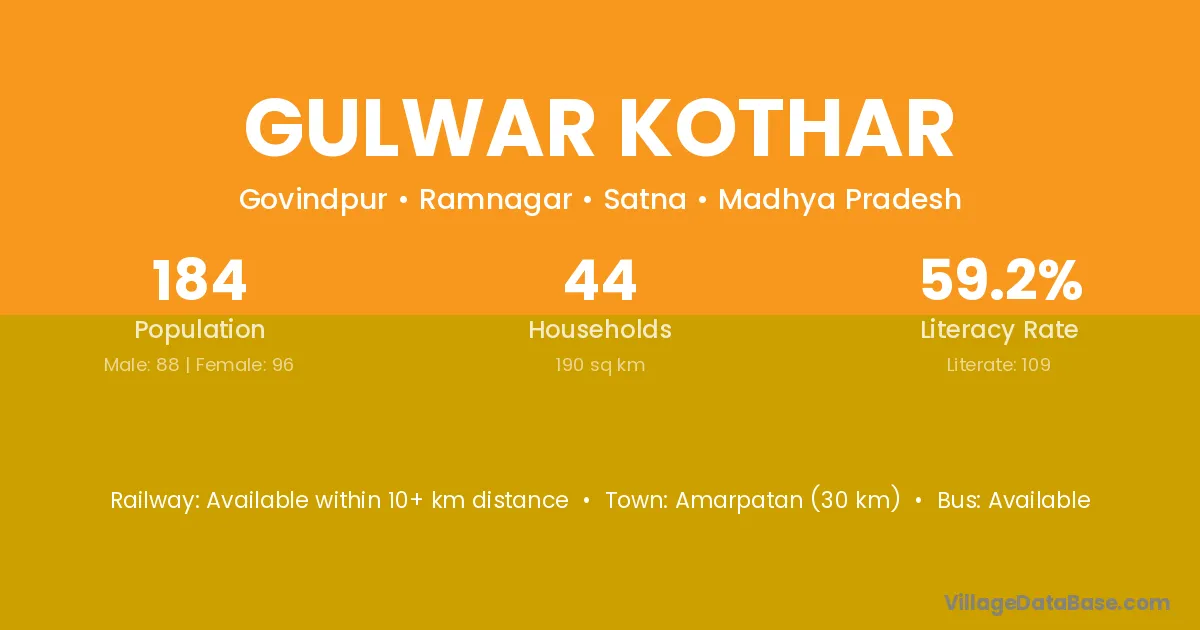 Gulwar Kothar village has a total population of 184 people, of which 88 are males and 96 are females.