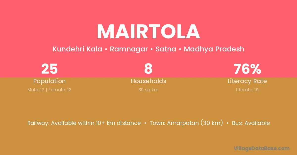 Mairtola village has a total population of 25 people, of which 12 are males and 13 are females.