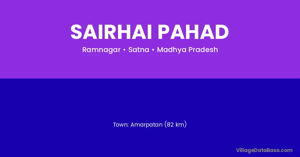 Amarpatan (82 km) is the nearest town to Sairhai Pahad village for major economic activities and is located approximately 82 km away.