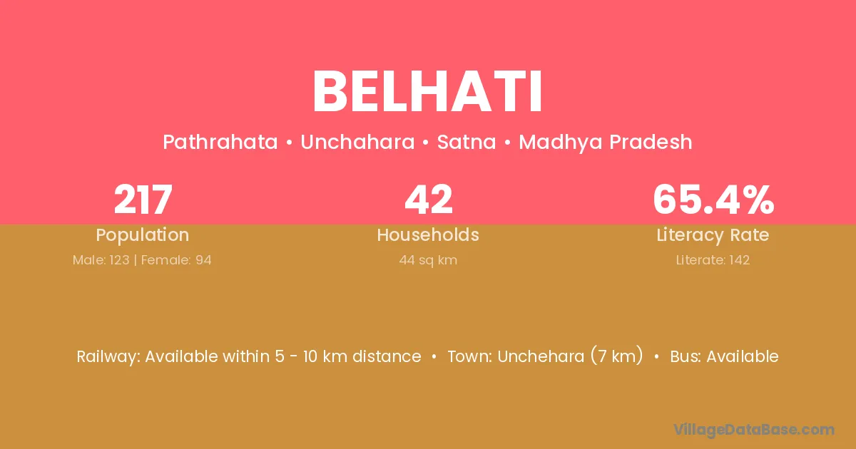 Satna (28 km) is the nearest town to Belhati village for major economic activities and is located approximately 28 km away.
